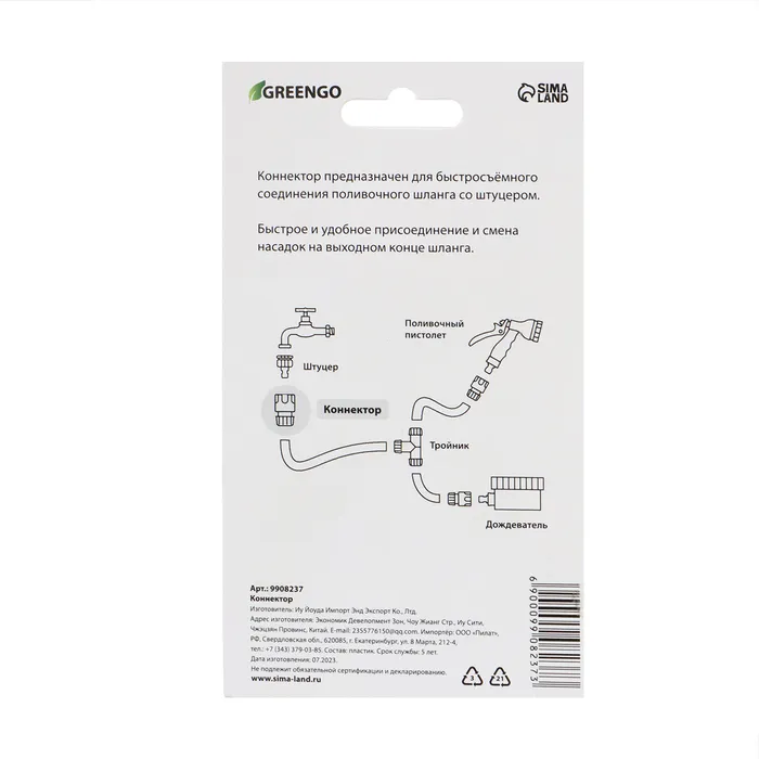 Коннектор, 1/2" (12 мм), быстросъёмное соединение, прорезиненный пластик, Greengo — Характеристики