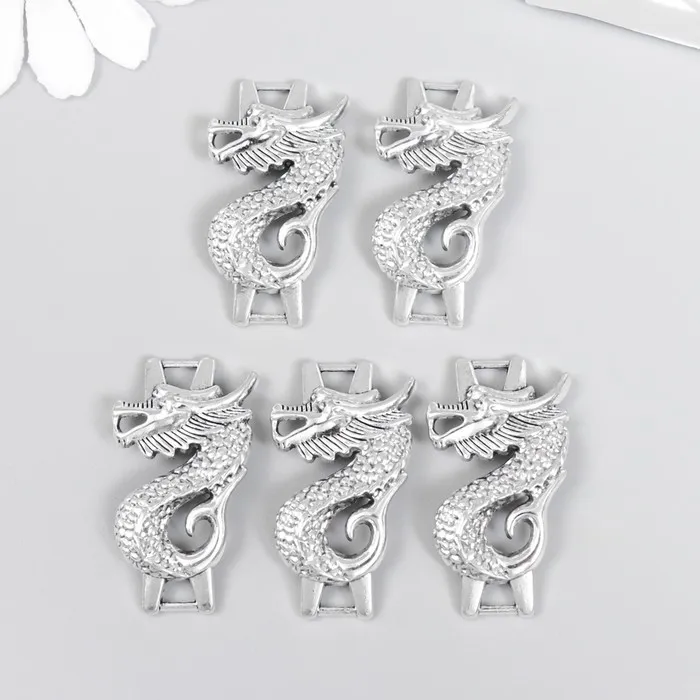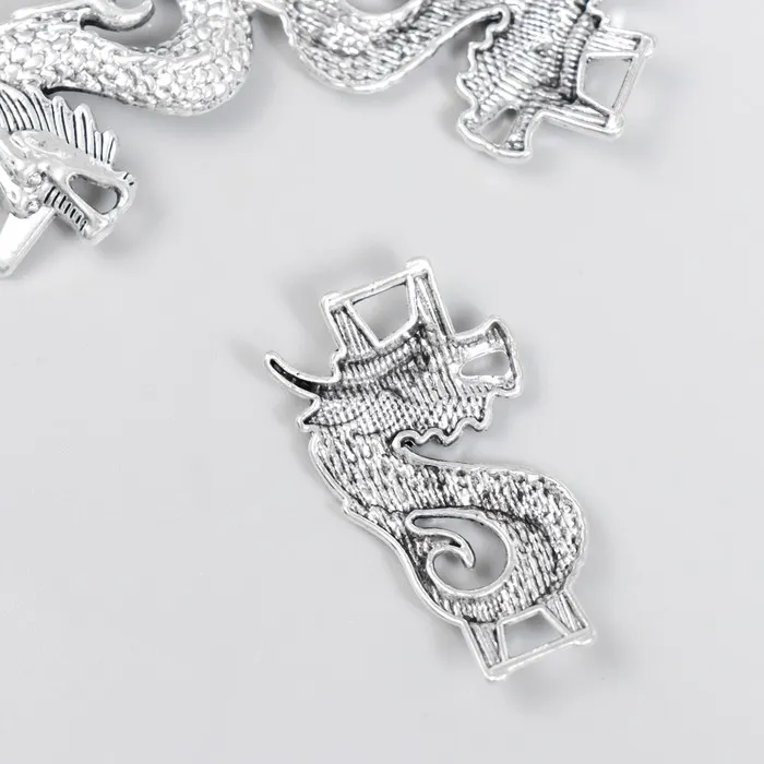 Коннектор для творчества металл 2 ушка «Китайский дракон», серебро, 3.6×2 см