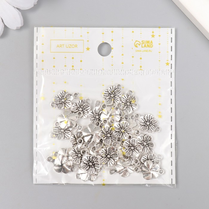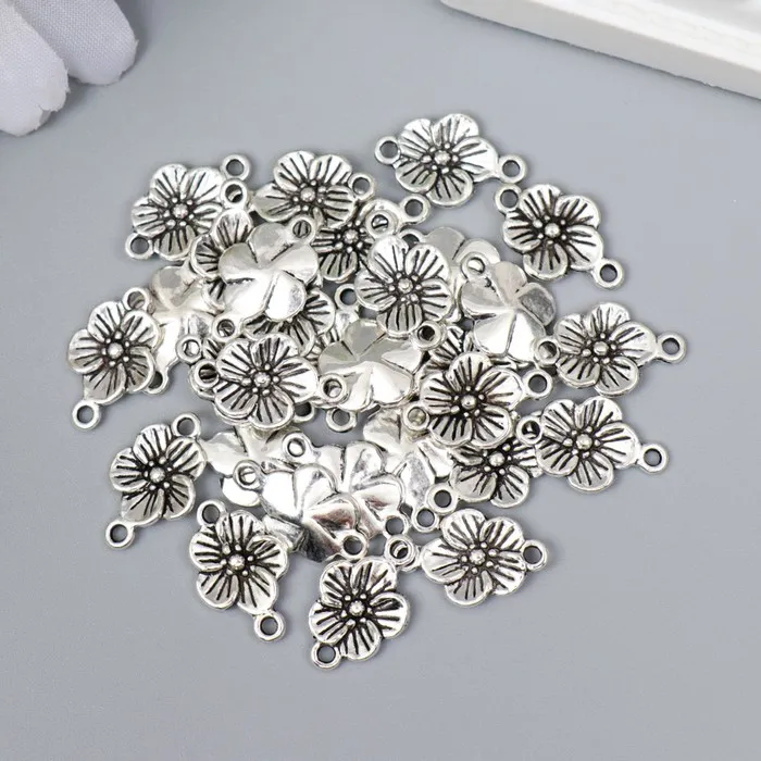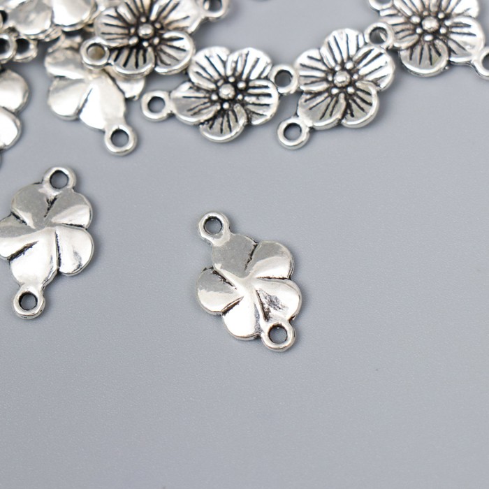 Коннектор для творчества металл 2 ушка "Незабудка" серебро G081B807 1,7х1,1 см