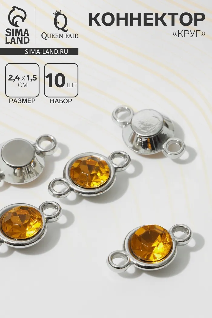 Коннектор «Круг» 2,4×1,5×0,7 см, (набор 10 шт.), цвет жёлтый в серебре — Характеристики