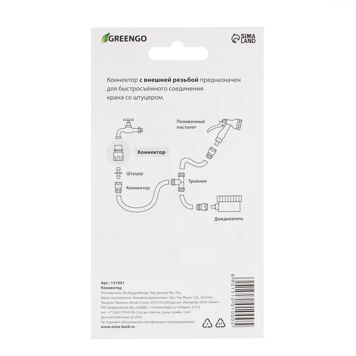 Коннектор, наружная резьба 3/4", быстросъёмное соединение, пластик, Greengo — Характеристики