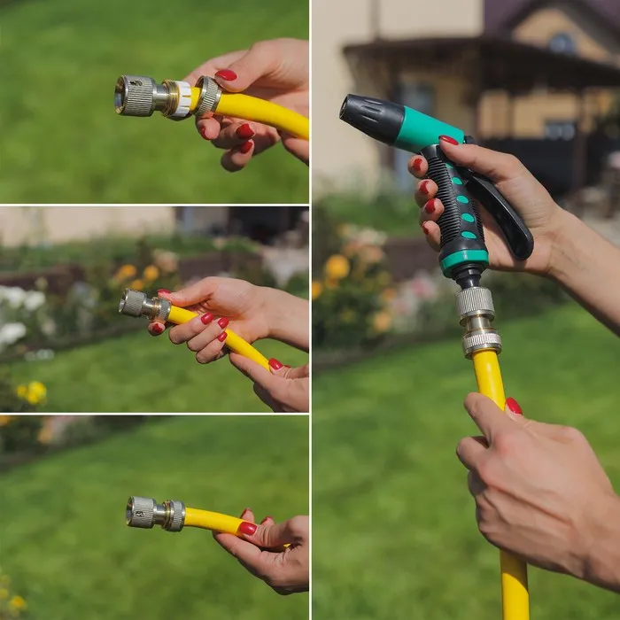 Коннектор предназначен для соединения шланга с пистолетами-разбрызгивателями и распылительными насадками. С ним вы сможете с легкостью менять насадки по необходимости, кроме того он оснащен системой аквастоп. Теперь при отсоединении насадки подача воды сразу же прекратится.