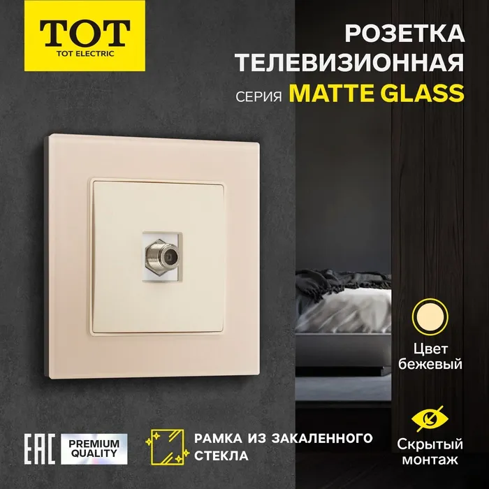 Розетка телевизионная одноместная TOT Matte Glass, скрытая, стекло, бежевая