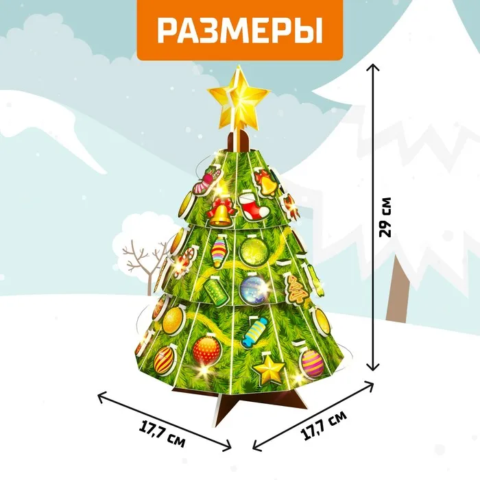 Набор подойдёт для детей, которые любят собирать модели, а также для взрослых, желающих создать уют в доме. Компактный размер и яркий свет гирлянды сделают ёлочку украшением рабочего стола, полки или новогодней композиции.