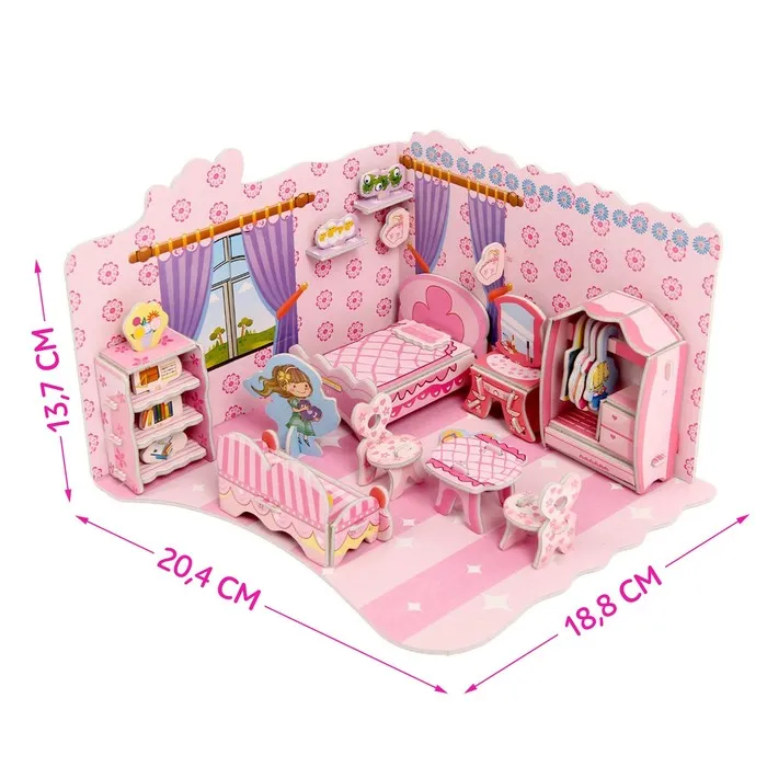 Конструктор 3D «Комната принцессы» — это увлекательный набор, который позволит детям создать красивую и стильную комнату для настоящей принцессы. С помощью этого конструктора ребёнок сможет собрать интерьер с кроватью, столиками и аксессуарами. В процессе сборки развиваются творческие способности, внимание к деталям и мелкая моторика.