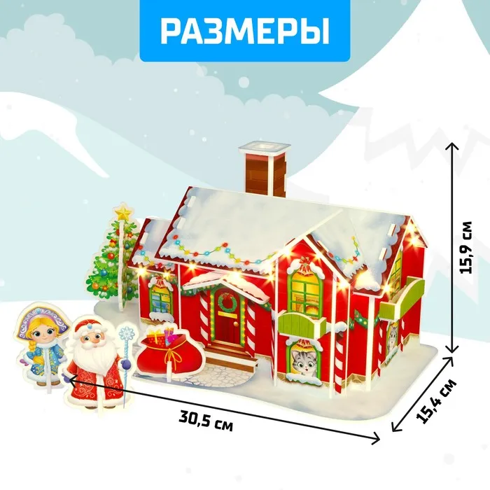 Конструктор 3D «Новогодний домик», со светодиодной гирляндой, 23 детали — Характеристики