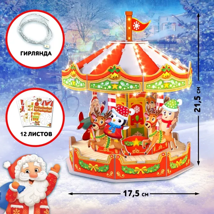 Конструктор 3D «Весёлая карусель», с гирляндой, 36 деталей — Характеристики