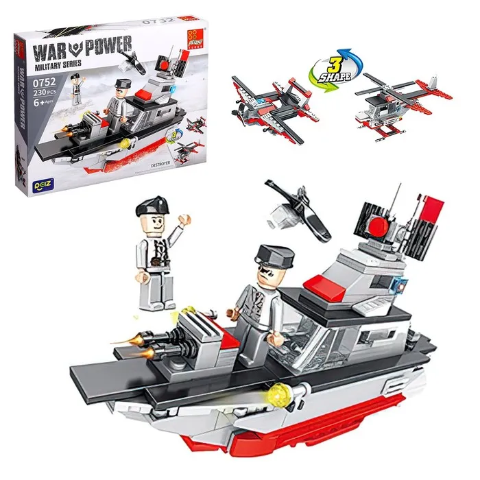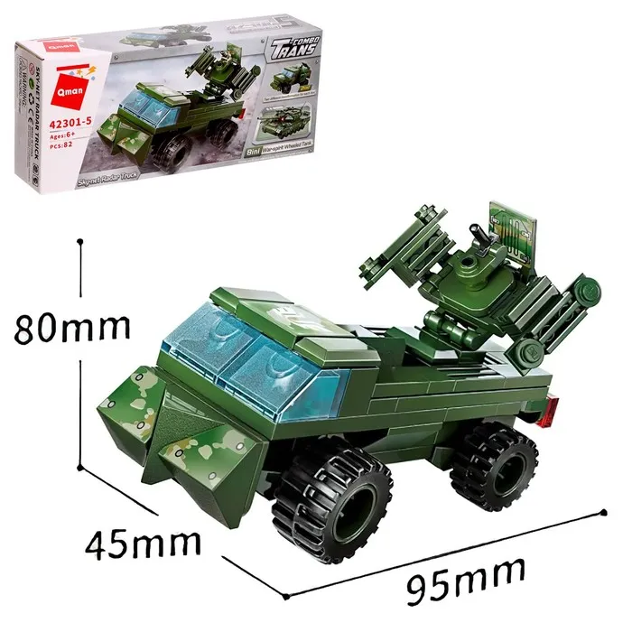 - Следуя подробной инструкции, ребёнок соберёт военный транспорт.