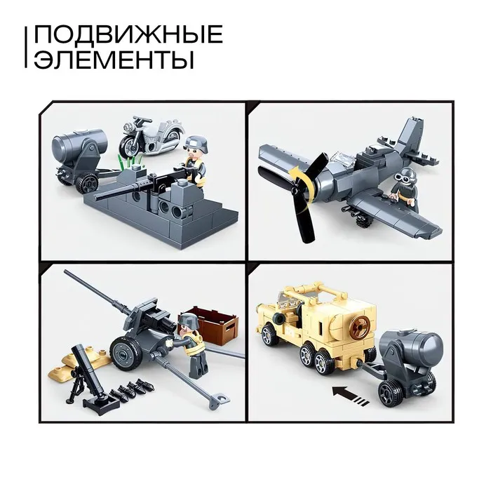 - Совместимость с мировыми брендами: Детали конструктора легко сочетаются с элементами других популярных брендов, что позволяет создавать более масштабные военные сцены и расширять игровые возможности.