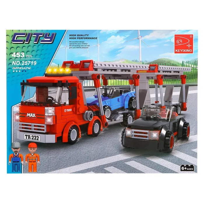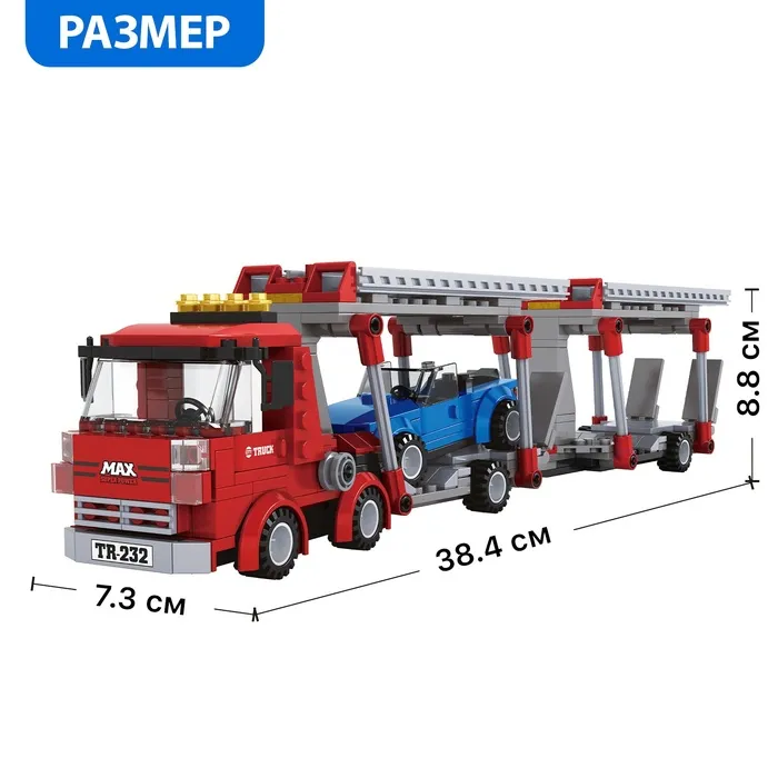 Сборка конструктора развивает мелкую моторику, пространственное мышление и внимание к деталям. Ребёнок учится логически выстраивать конструкцию, продумывать соединение деталей и моделировать процесс перевозки машин. Игра стимулирует воображение и интерес к технике.