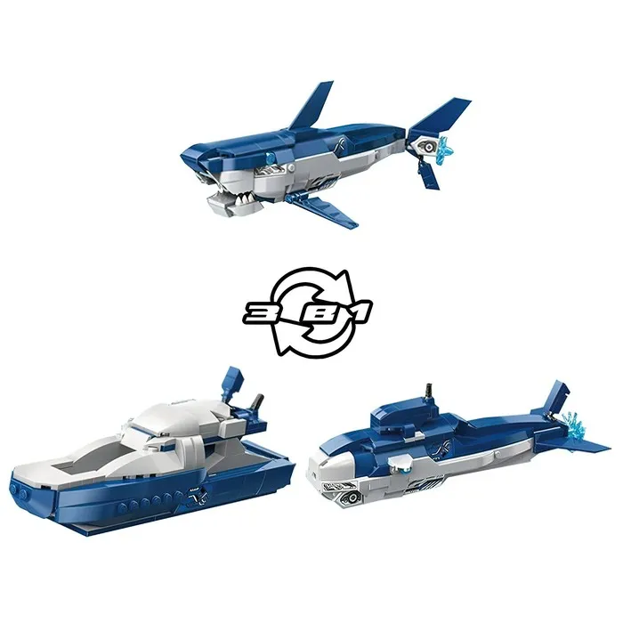 - Три модели в одном наборе: Ребенок может собрать грозную акулу, катер и кита, создавая свою собственную океанскую экосистему.