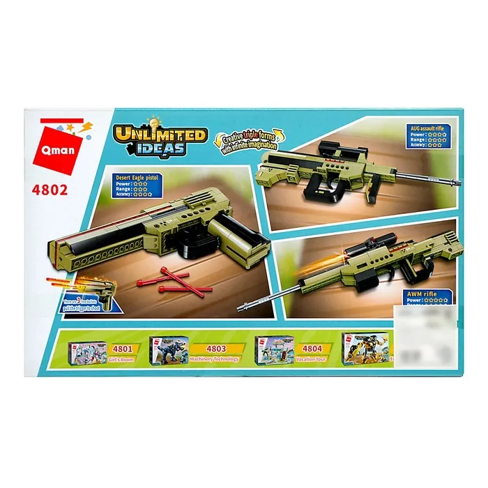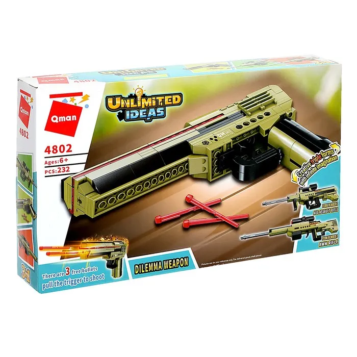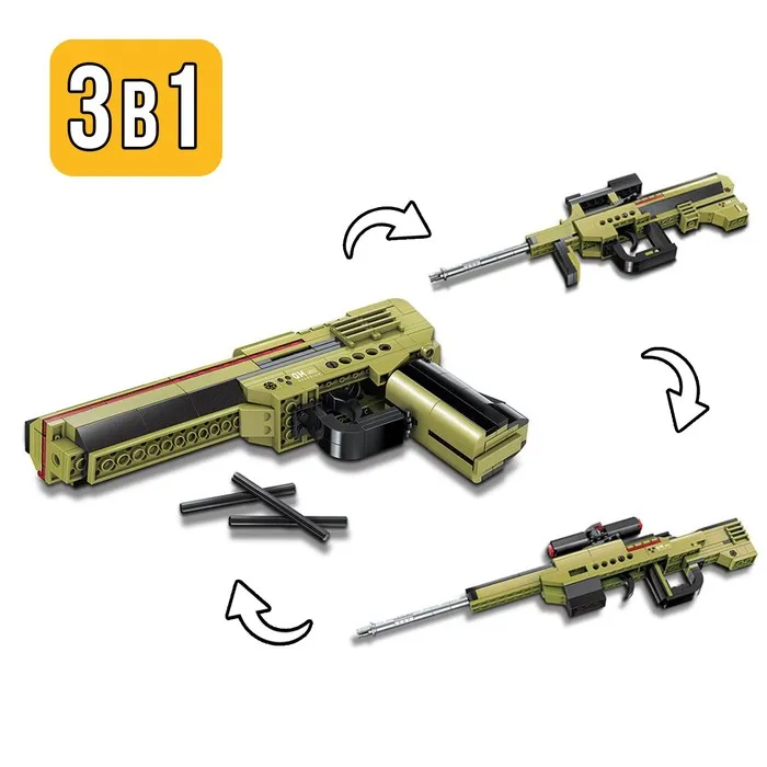 - Три варианта сборки: Из одного набора можно создать три уникальные модели оружия, что делает игру разнообразной и увлекательной.
