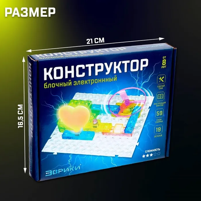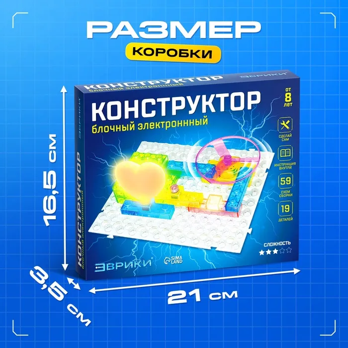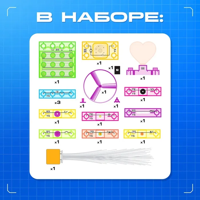 Конструктор блочный-электронный «В мире электроники», 59 схем, 19 деталей — Характеристики