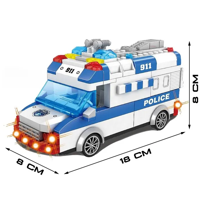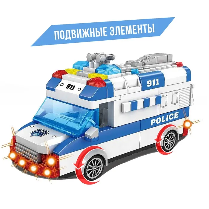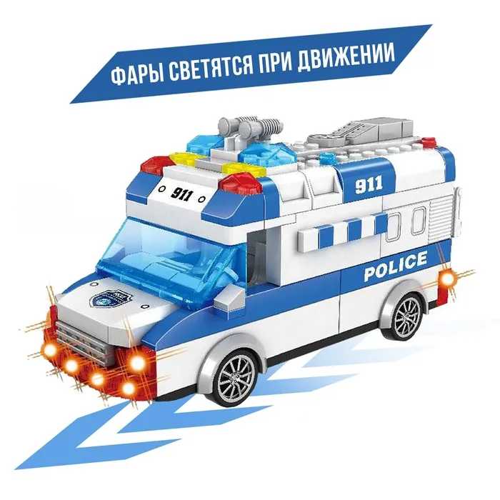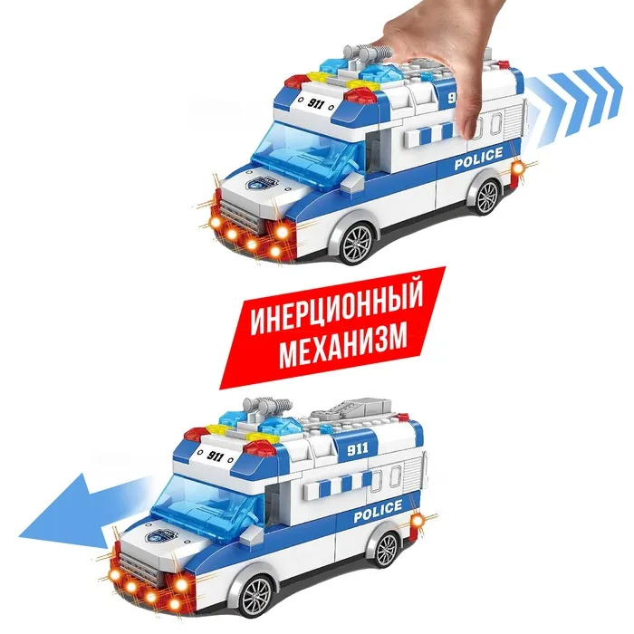 Собери полицейский фургон и отправься на задание! Блочный инерционный конструктор с подсветкой и звуковыми эффектами — это увлекательное занятие для маленьких инженеров и поклонников техники.