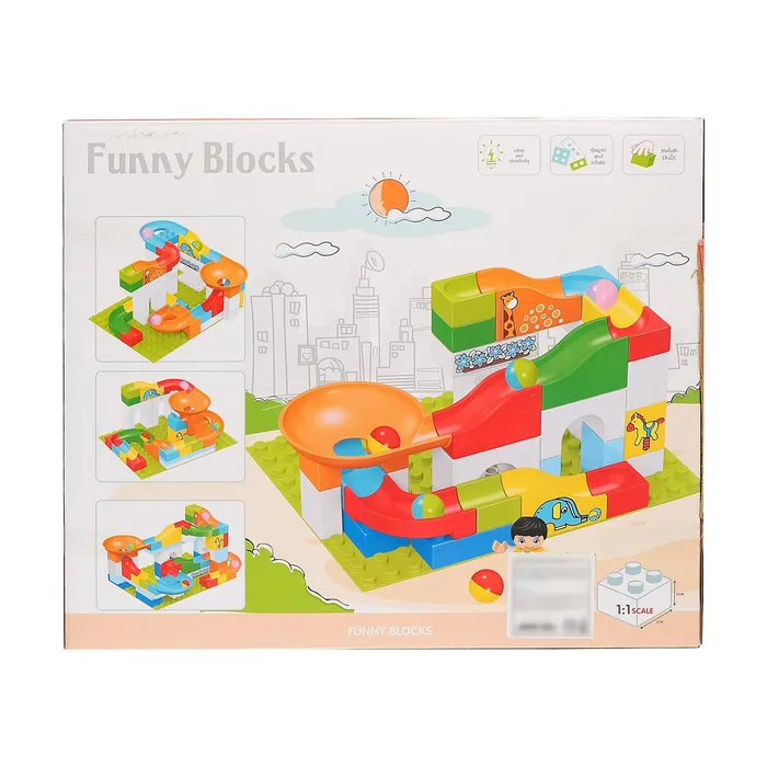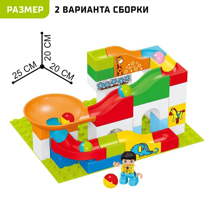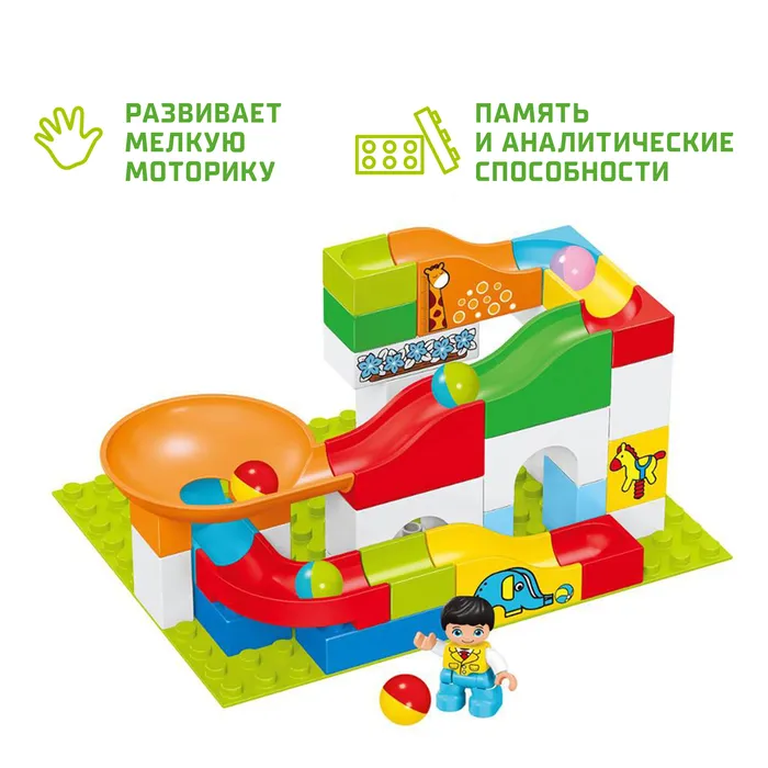 Создай свой лабиринт и отправь шарики в увлекательное путешествие! Конструктор «Блочный марблс» (53 детали) – интерактивный набор для сборки захватывающей трассы для шариков. Ребёнок сможет самостоятельно конструировать маршруты и наблюдать за движением шаров, развивая логику и пространственное мышление.