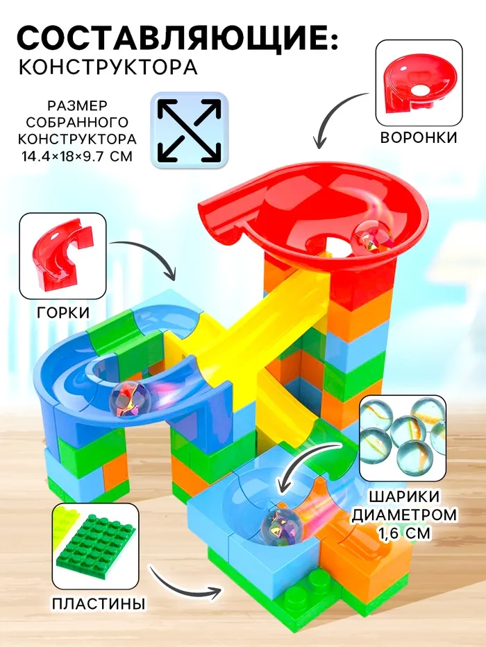 Конструктор блочный марблс «Турбошарики», 56 деталей — Характеристики