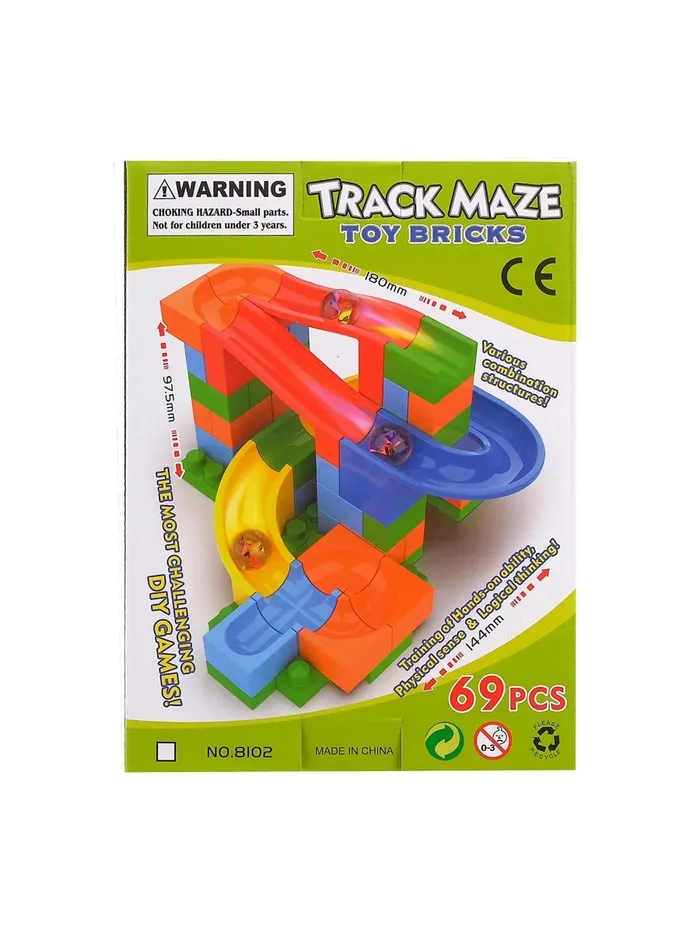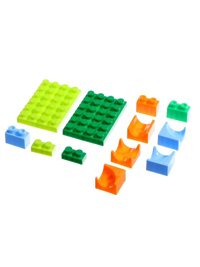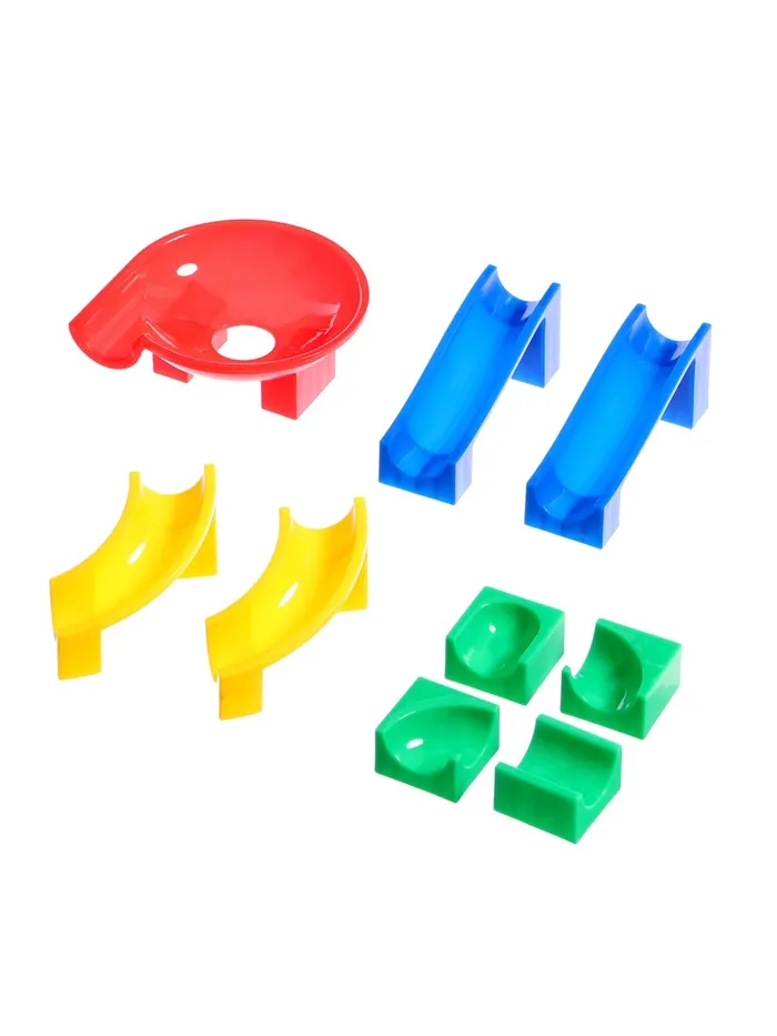 Набор состоит блочных элементов, разноцветных мостиков и извилистых дорожек. Малыш без труда соорудит трассу любой длины и сложности и будет следить за перемещениями шариков.