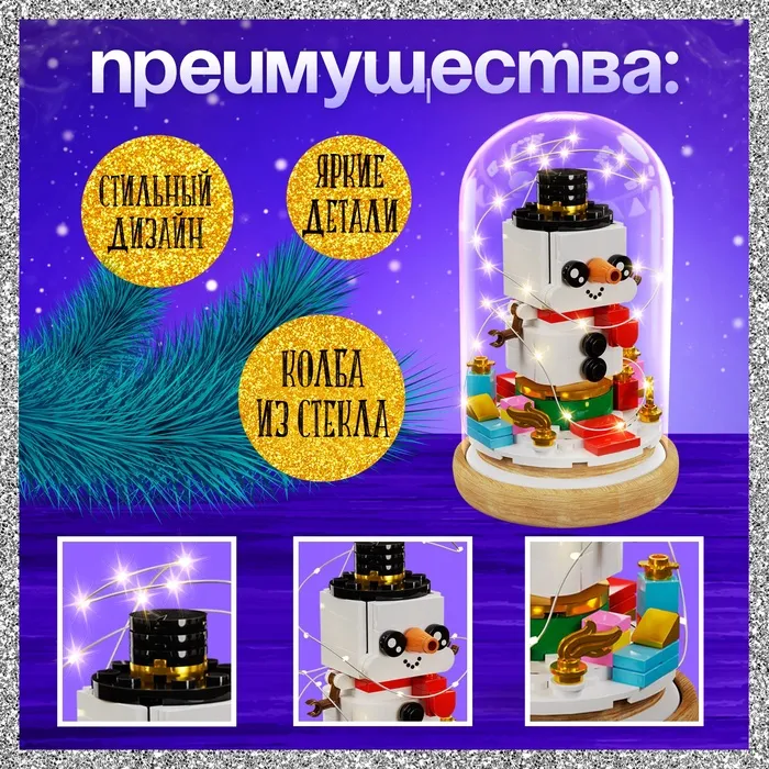 Конструктор блочный ночник «Снеговик», 131 деталь, с гирляндой — Характеристики