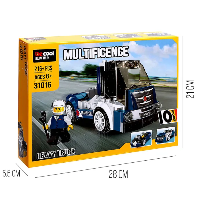 Конструктор блочный «Спорткар», 10 вариантов сборки, 216 деталей — Характеристики