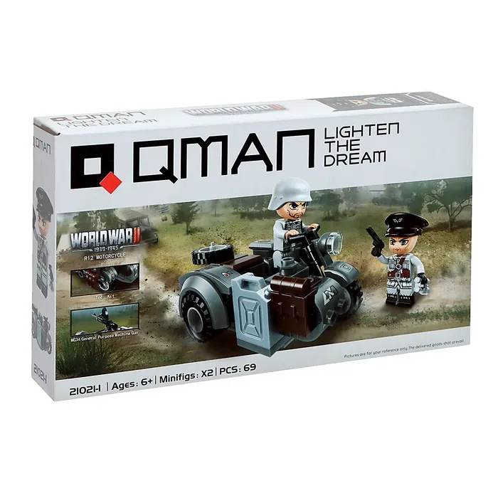 Конструктор блочный Вторая мировая война «Военный мотоцикл», 69 деталей — Характеристики