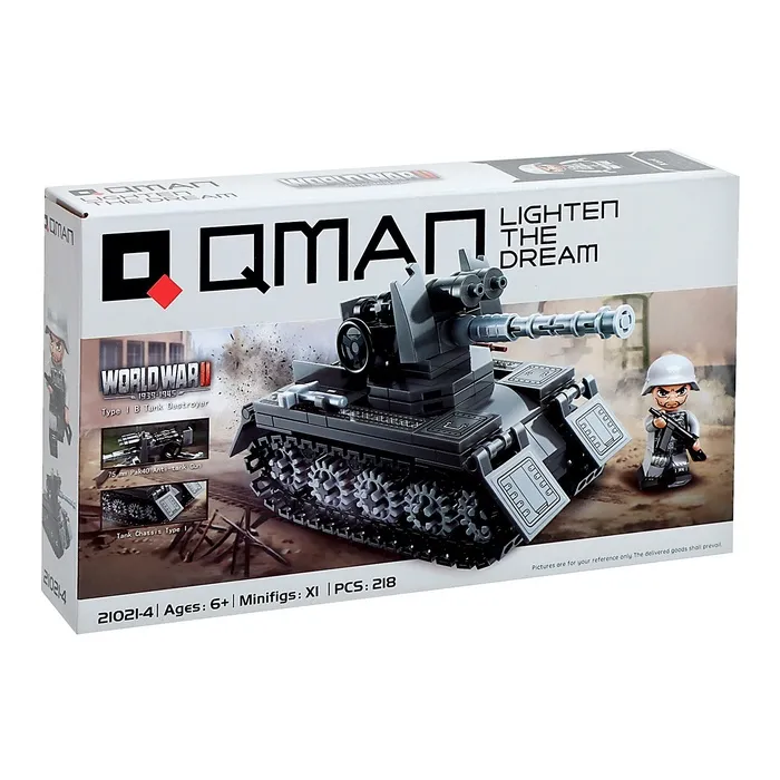 - 218 деталей для сборки: В комплект входят блоки для корпуса танка, подвижная башня, гусеницы и мини-фигурка экипажа.