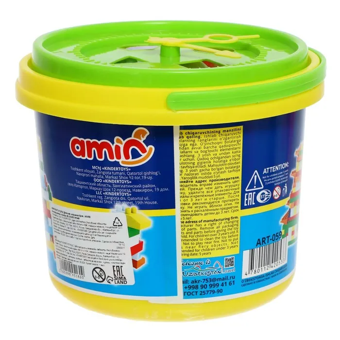 Конструктор BLOCKS, 34 детали, циферблат, сортер, в ведре — Характеристики
