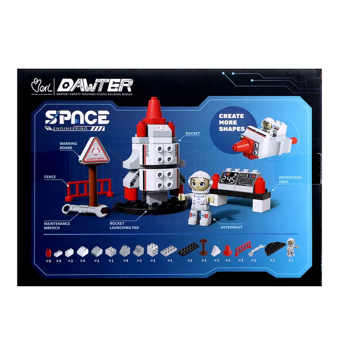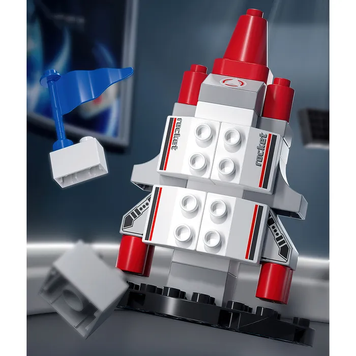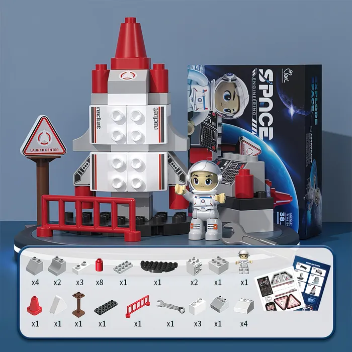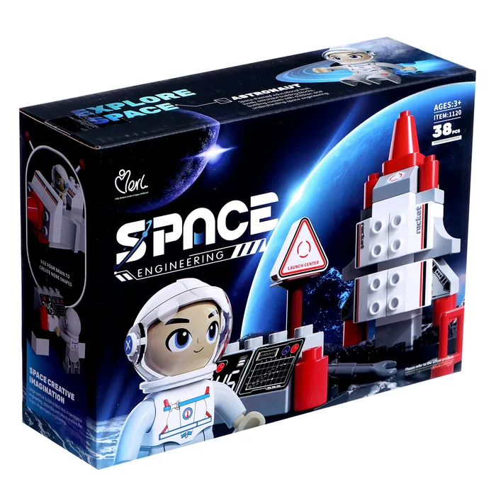 - 38 деталей для творчества: Набор включает разнообразные элементы, позволяющие собирать ракеты, спутники и другие космические конструкции. Каждая деталь открывает новые возможности для игры и обучения.