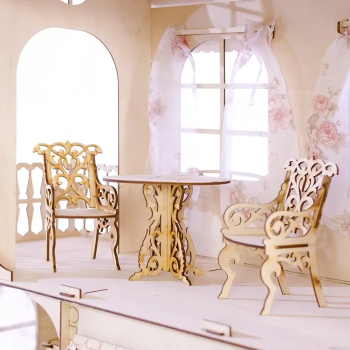 - Кукольный дом изготовлен из берёзовой фанеры. Толщина — 3 мм.