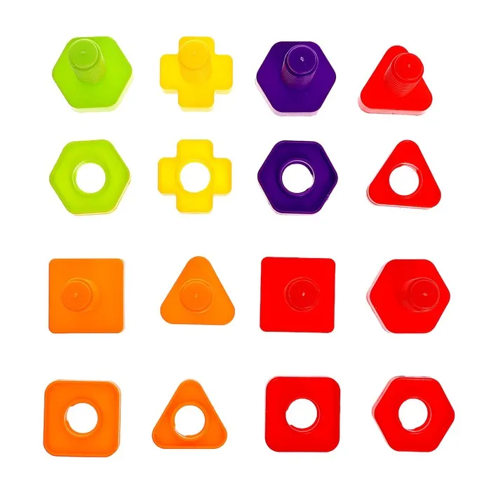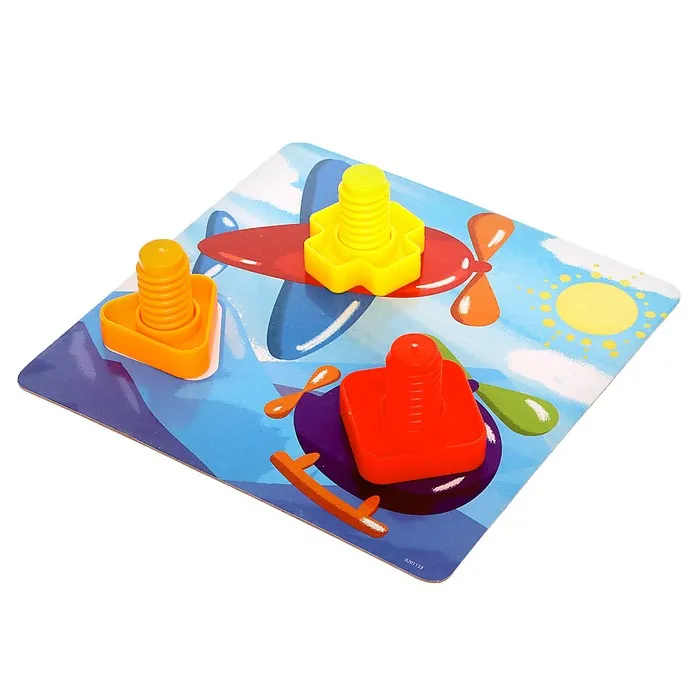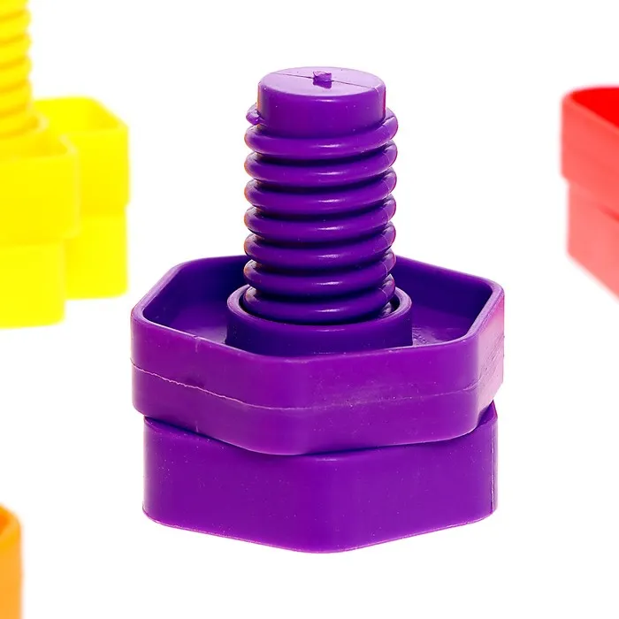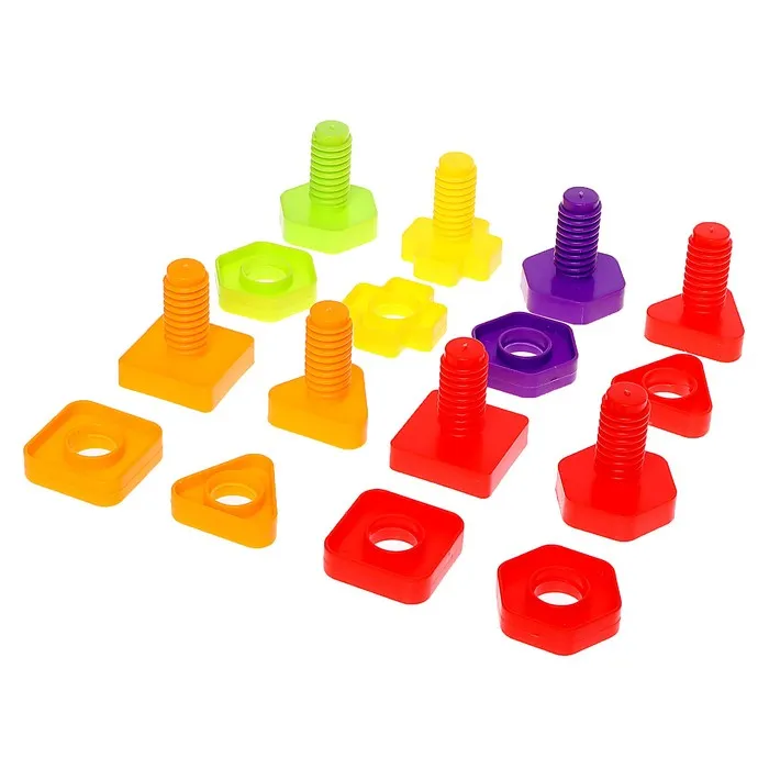 В процессе игры с винтовым конструктором «Болты и гайки» ребёнок разовьёт мелкую моторику, воображение и творческие способности. А также научится закручивать и откручивать гайки, что потренирует щипковый захват. Это умение в будущем пригодится при освоении рисования, письма и выполнении различных бытовых задач.