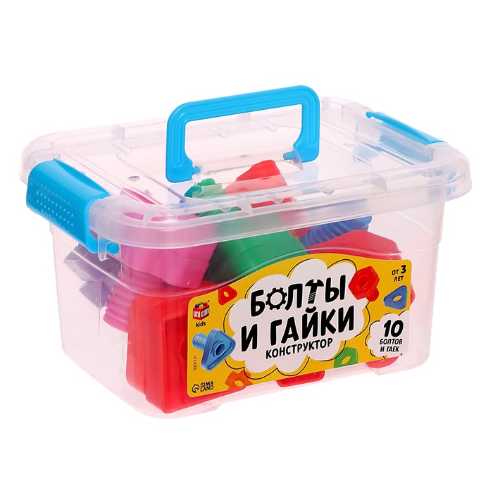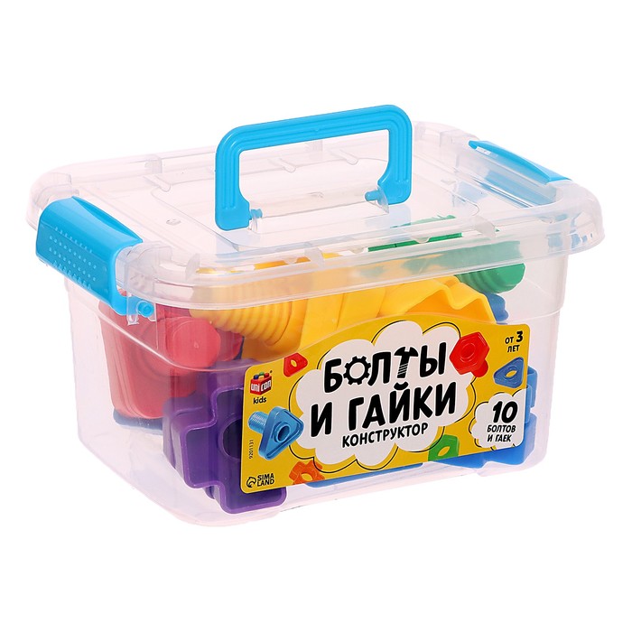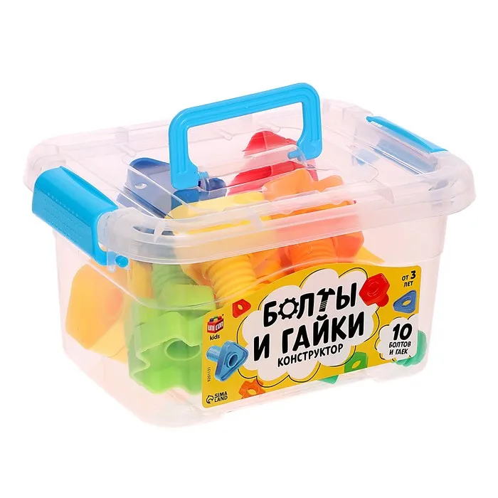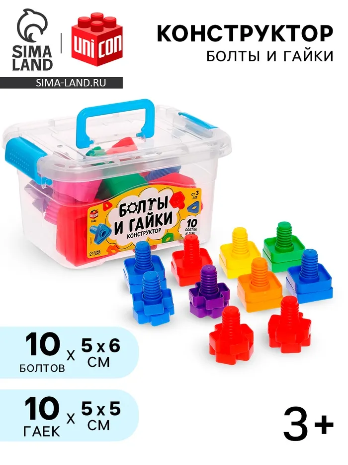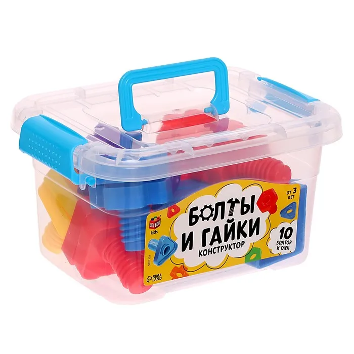 С винтовым конструктором «Болты и гайки» ребёнок познакомится с простейшими элементами винтового конструктора, узнает названия цветов и потренирует другие полезные навыки.