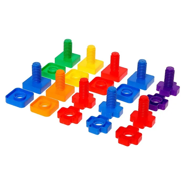 В процессе игры с винтовым конструктором «Болты и гайки» ребёнок разовьёт мелкую моторику, воображение и творческие способности. А также научится закручивать и откручивать гайки, что потренирует щипковый захват. Это умение в будущем пригодится при освоении рисования, письма и выполнении различных бытовых задач.