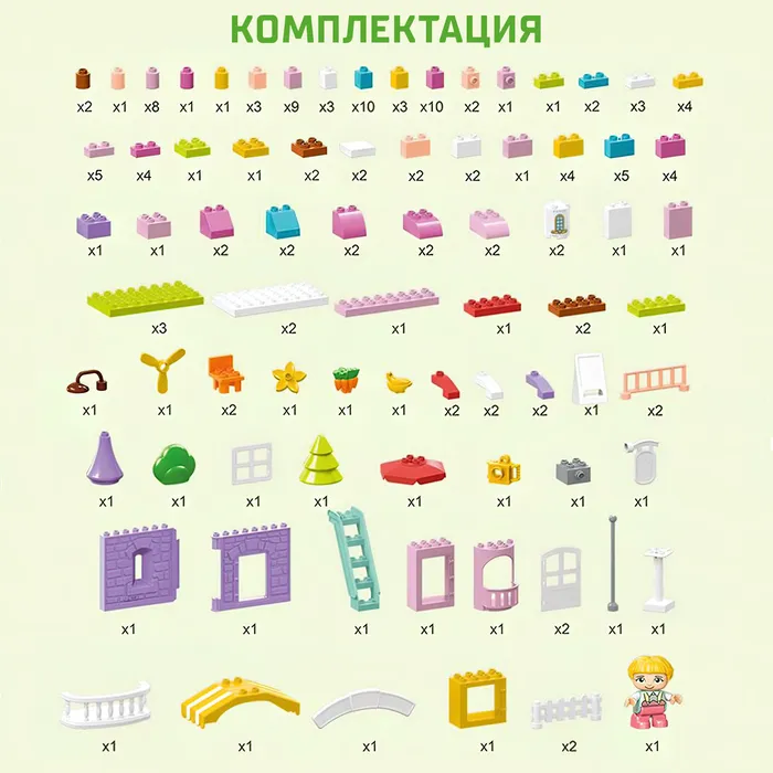 - Большой набор – 163 детали: Ребенок сможет собрать детализированный дом с мебелью и аксессуарами, развивая логическое мышление и мелкую моторику. Набор подходит для длительных игр и совместного творчества.