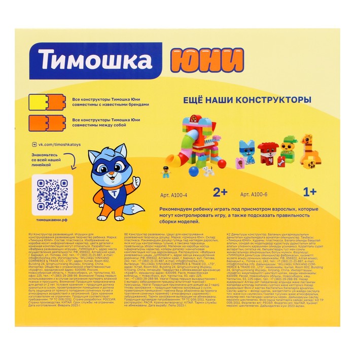 - Крупные детали для маленьких рук: элементы разработаны с учётом возраста от 2 лет — их удобно брать и соединять. Все части выполнены из прочного пластика без острых углов.