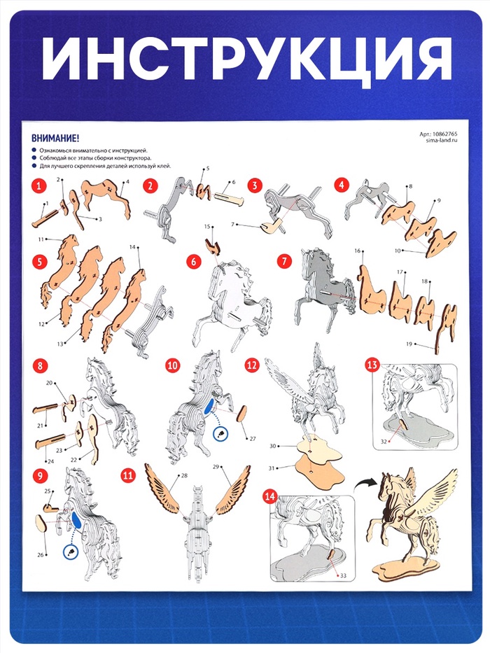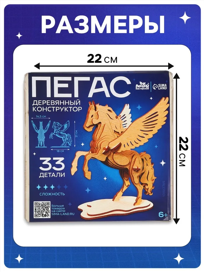 Деревянный конструктор «Пегас» — это увлекательная 3D-модель из 33 деталей для девочек от 6 лет, которая помогает создавать волшебные образы мифических существ.