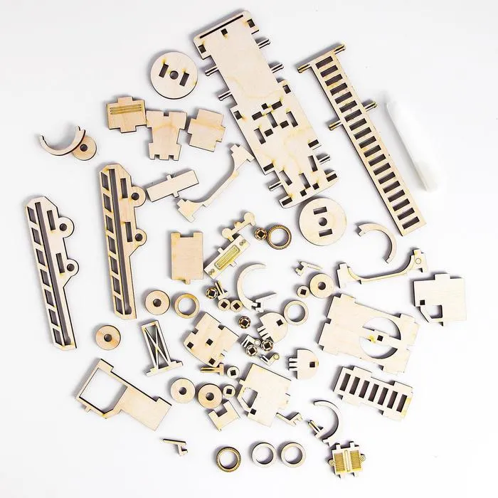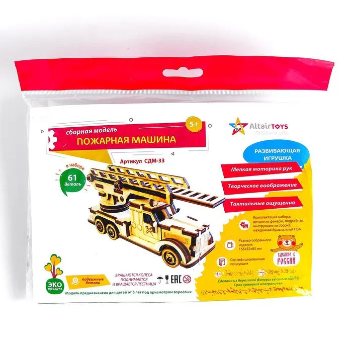 Конструктор деревянный 3д модель «Пожарная машина», 61 деталь — Характеристики