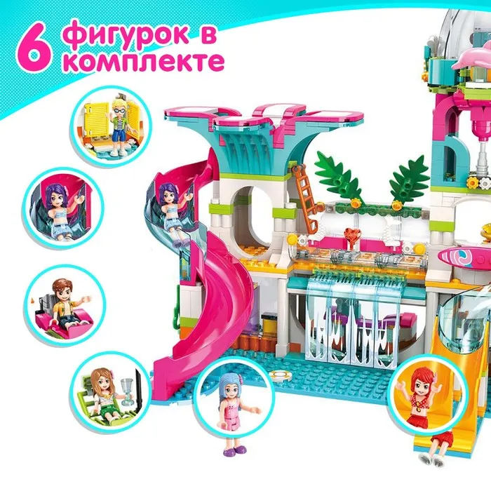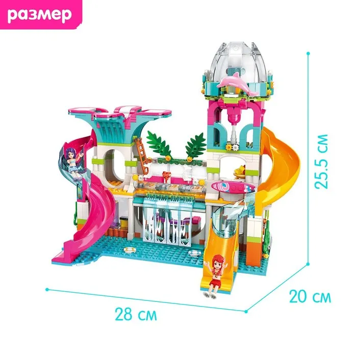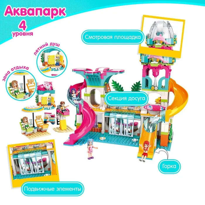 Собирая конструкцию, ребенок тренирует мелкую моторику, логическое мышление и фантазию. Готовый аквапарк вдохновляет на ролевые игры, развивая социальные навыки.