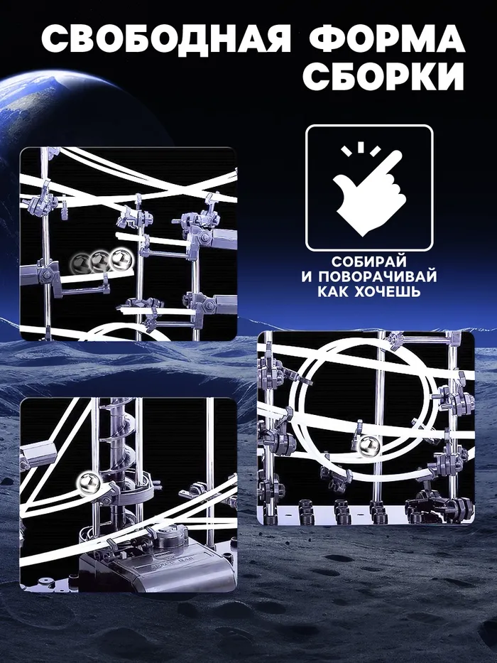 Сборка треков развивает пространственное мышление, мелкую моторику и творческие способности. Дети учатся планировать и решать задачи, создавая собственные конструкции и наблюдая за движением шариков по построенным трассам.