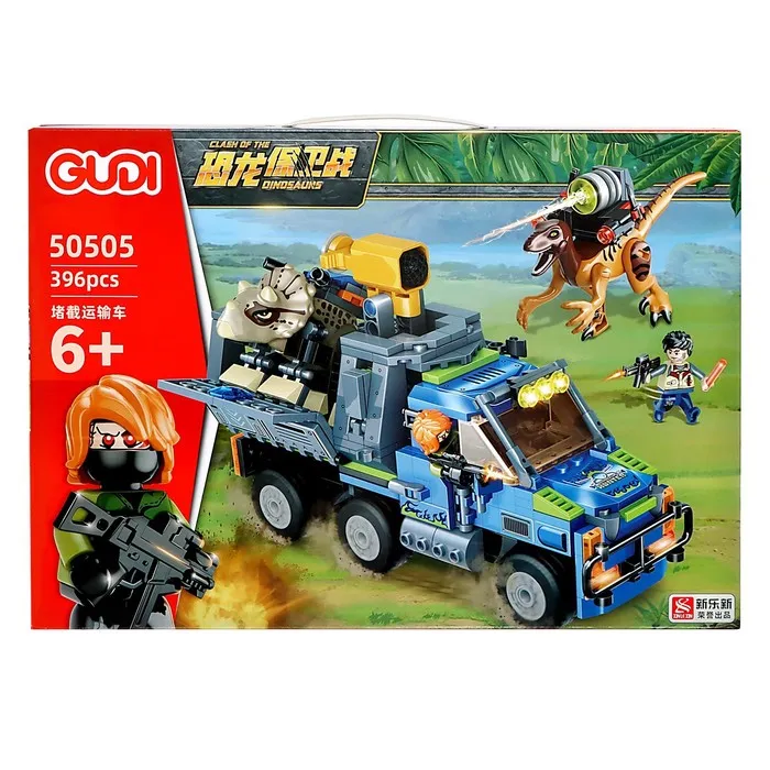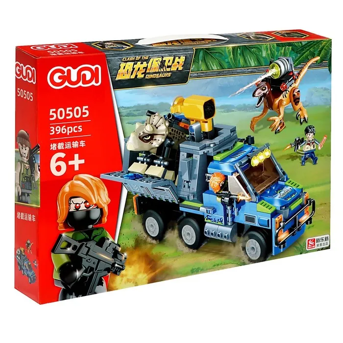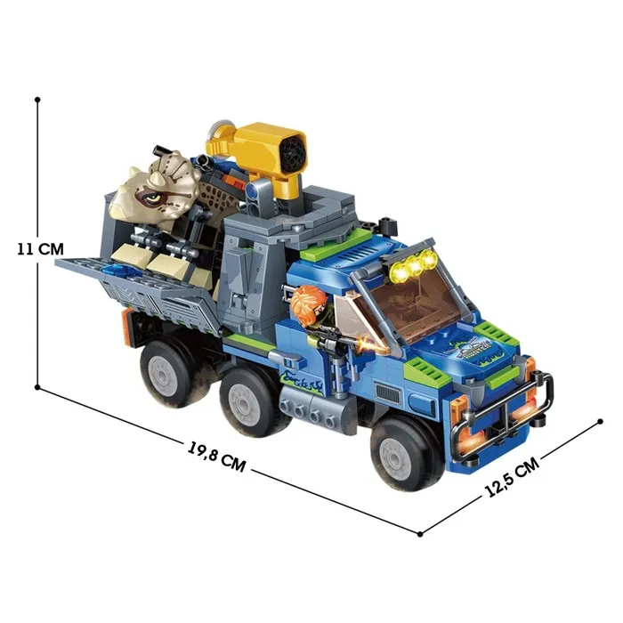 - Бронированный грузовик: Мощный транспорт оснащён подвижными элементами, фарами и захватом для поимки динозавров.