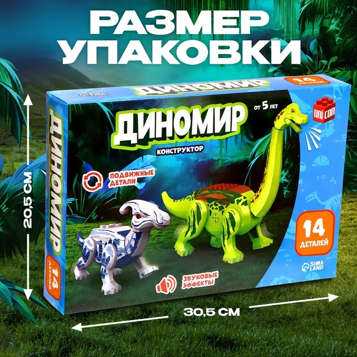 Конструктор «Диномир», 14 деталей, паразауролоф и бронтозавр, звук — Характеристики