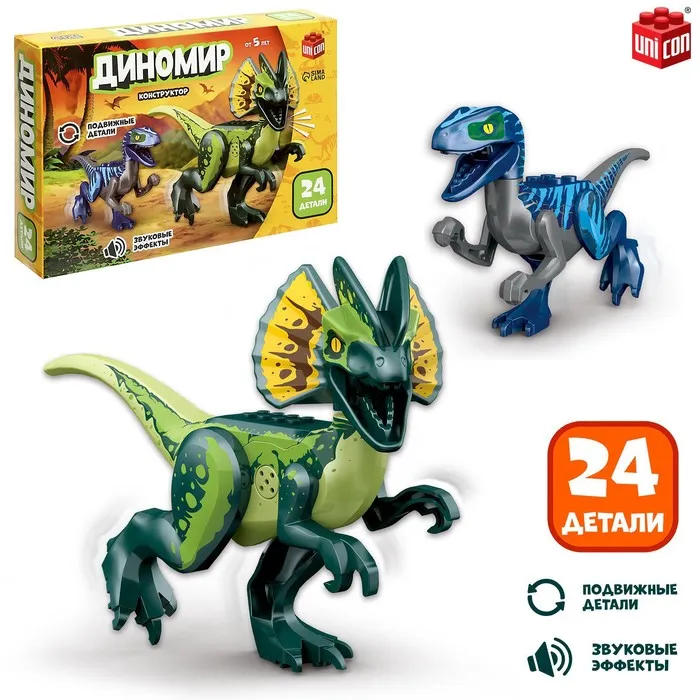 С конструктором «Диномир» ребёнок соберёт подвижную модель динозавра со звуковыми эффектами и окунётся в захватывающий мир доисторических гигантов!