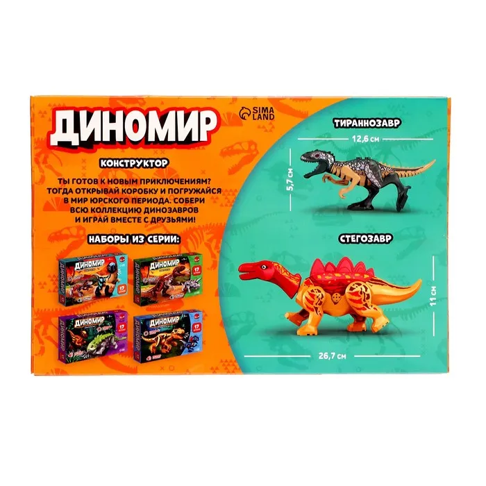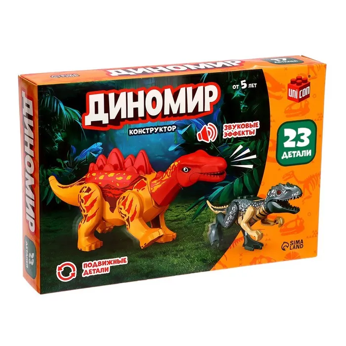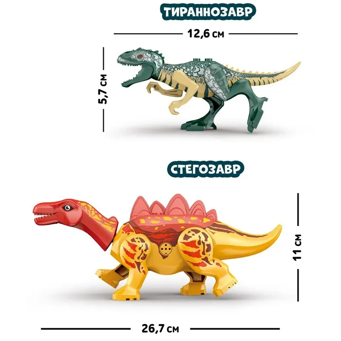 Конструктор «Диномир», 23 детали, тираннозавр и стегозавр, звук — Характеристики