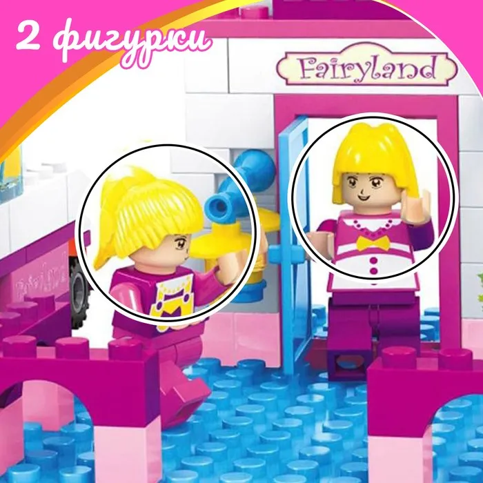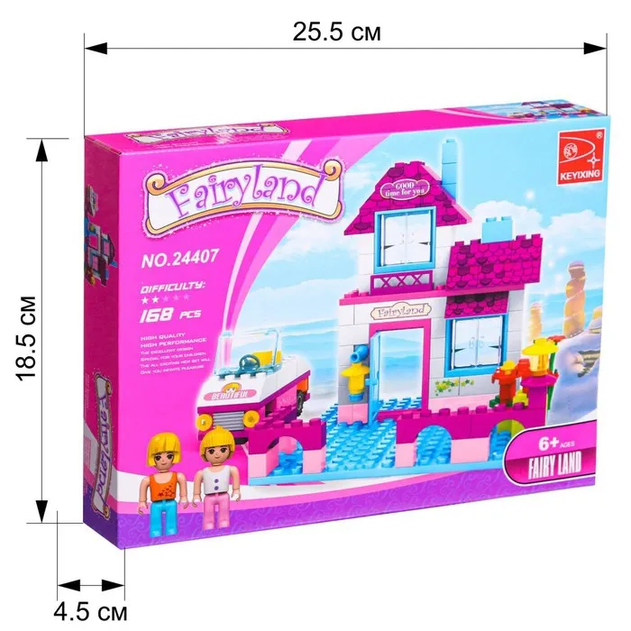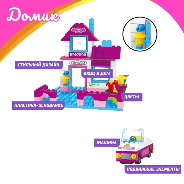 С набором торговой марки Ausini малышка соберёт двухэтажный коттедж для подружек. Она поможет персонажем создать уют в доме, высадить цветы, оградить территорию заборчиком, а также сконструирует автомобиль, чтобы куколки ездили в супермаркет и на работу.