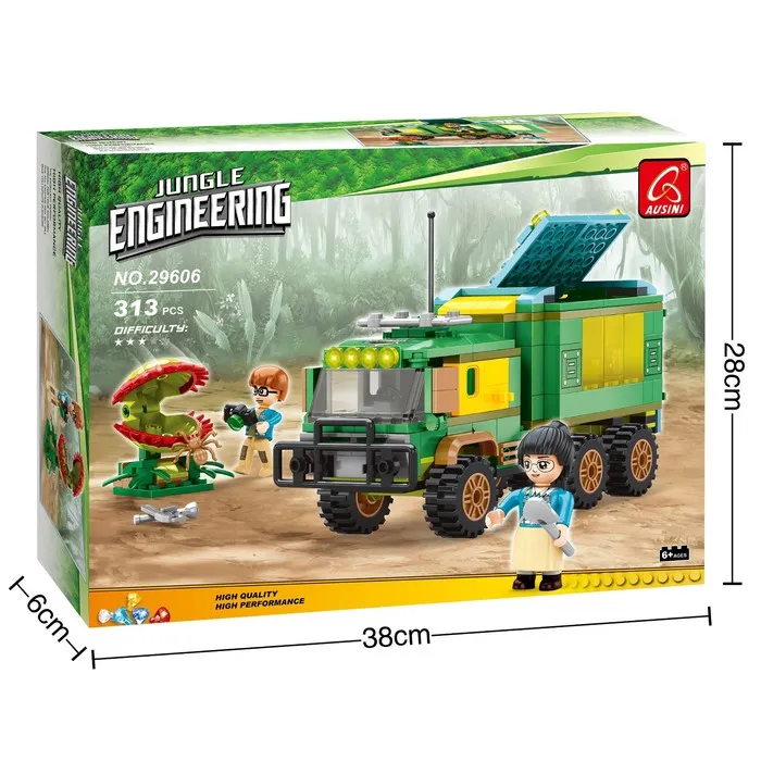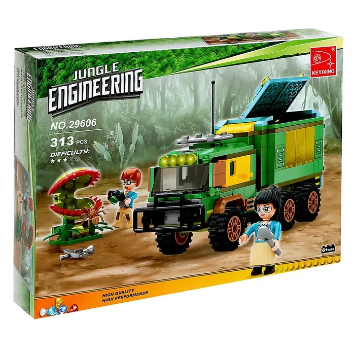 - Экспедиционный грузовик: Дети соберут мощную машину с деталями исследовательского оборудования, открывающимся грузовым отсеком и антеннами для связи. Он предназначен для путешествий по неизведанным территориям.