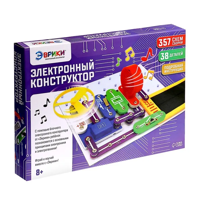 Экспериментируйте и создавайте электрические устройства самостоятельно. В наборах вы найдёте подробную инструкцию с описанием каждого шага. Конструктор «Эврики» предназначен для сборки различных простых электронных схем. Соединение элементов между собой производится с помощью специальных кнопочных креплений — это удобно, легко и быстро. Собранные схемы не требуют настройки и начинают работать сразу.