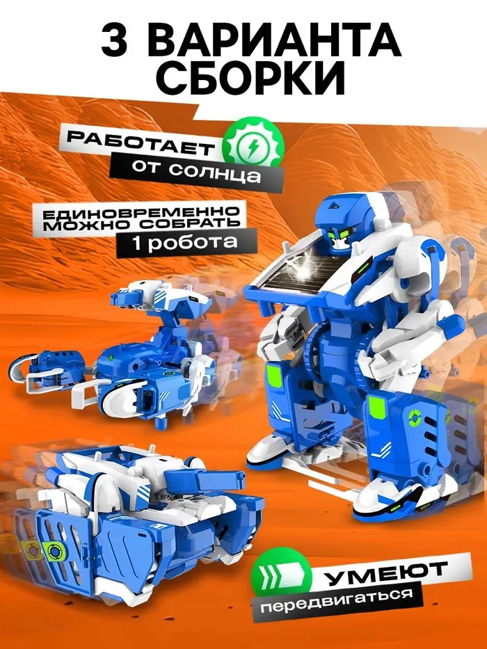 Представляем вашему вниманию занимательный набор для опытов 3 в 1 серии «Эврики: Прогрессивные технологии». Комплект позволит сконструировать не одну игрушку, а 3 различные модели: скорпиона, танка или робота. Создайте своего персонажа и наслаждайтесь игрой!