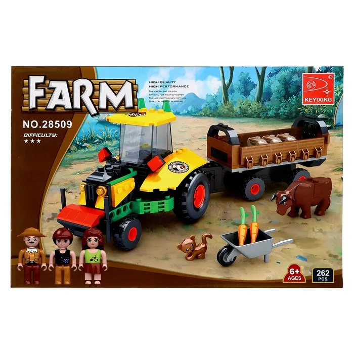 Почувствуй себя настоящим фермером! Конструктор Ферма «Трактор с телегой» (262 детали) – игровой набор для создания сельскохозяйственной техники и сюжетной игры на ферме. Ребёнок познакомится с устройством трактора, перевезёт урожай и разыграет повседневные фермерские заботы.