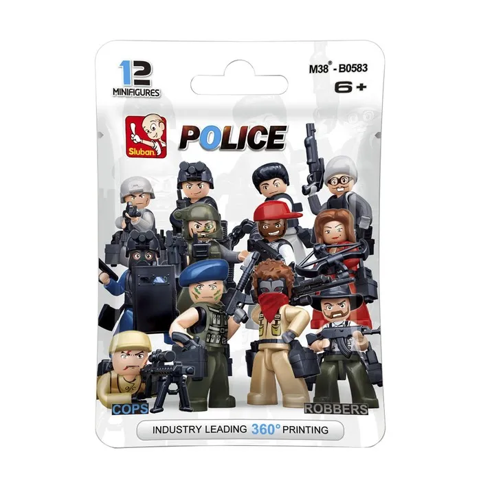 Соберите свою полицейскую команду с конструктором торговой марки Sluban. В каждом наборе вы найдёте одну фигурку стража порядка или грабителя. Объединяйте силы и защитите город от преступников.