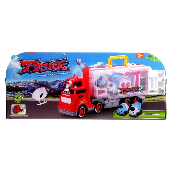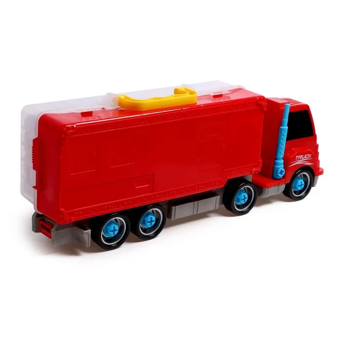 Конструктор «Фура», с машинками и инструментами, световые эффекты, 33 детали цвет красный