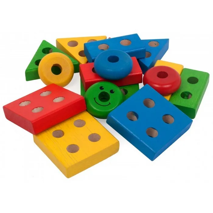 Конструктор «Геометрик» — это платформа со штырьками, на которые нужно правильно подобрать и надеть разные геометрические фигуры: квадраты, треугольники, прямоугольники и круги. Игра научит ребёнка различать цвета и предметы по форме.