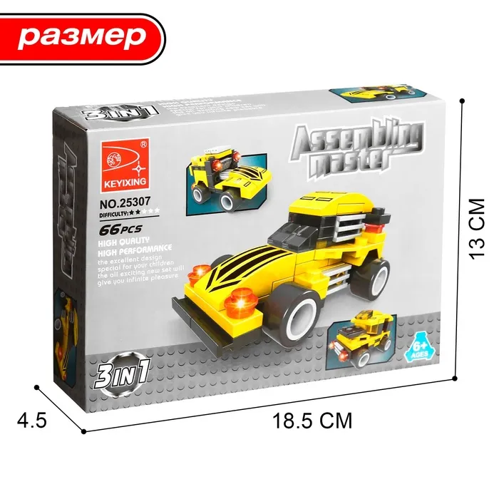 Конструктор «Гонка», 3 варианта сборки, 66 деталей — Характеристики